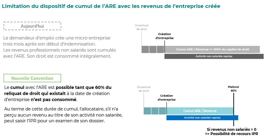 Depuis avril 2025, le cumul ARE + revenus issus de l’activité indépendante est possible tant que 60% du reliquat de droits ARE qui existait à la date de création d’entreprise n’est pas consommé.
